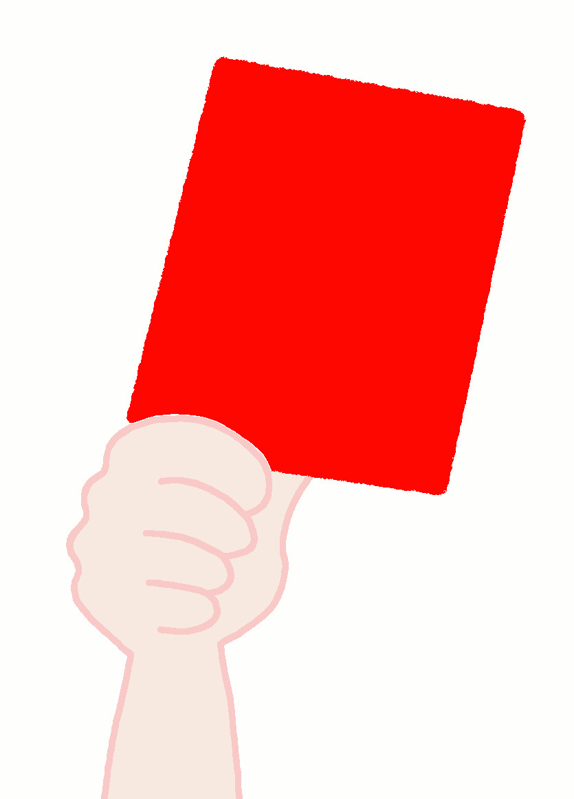 7.同一試合中に警告(イエローカード)を2回受ける(つまり再度のイエロー=レッドカードになる)この場合、その試合1枚目のイエローカードも含め、累積警告は加算しない。